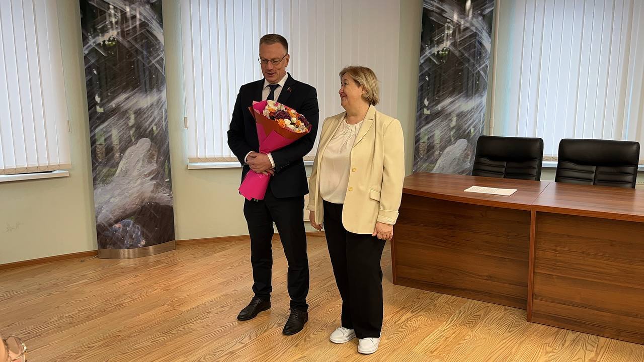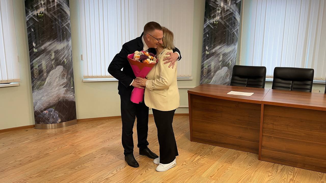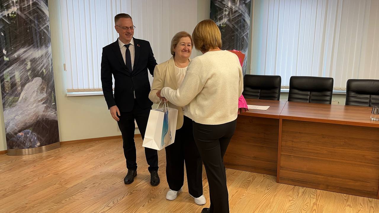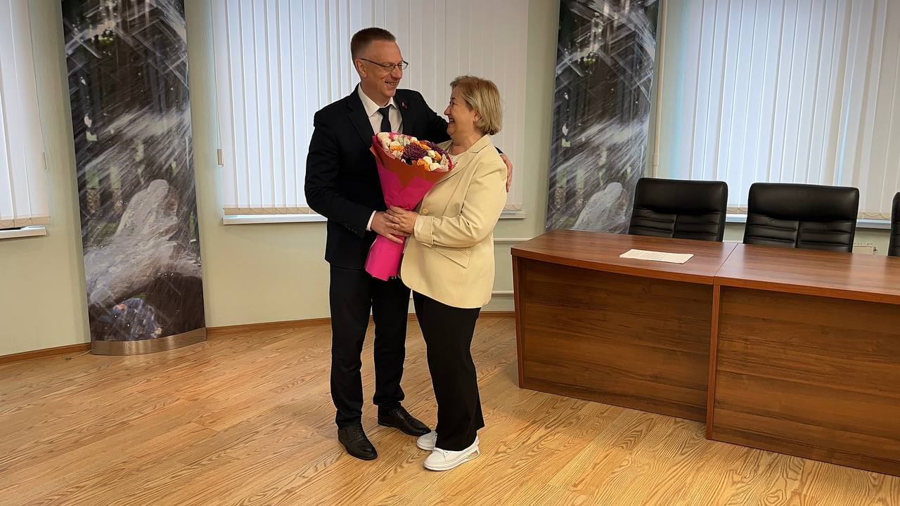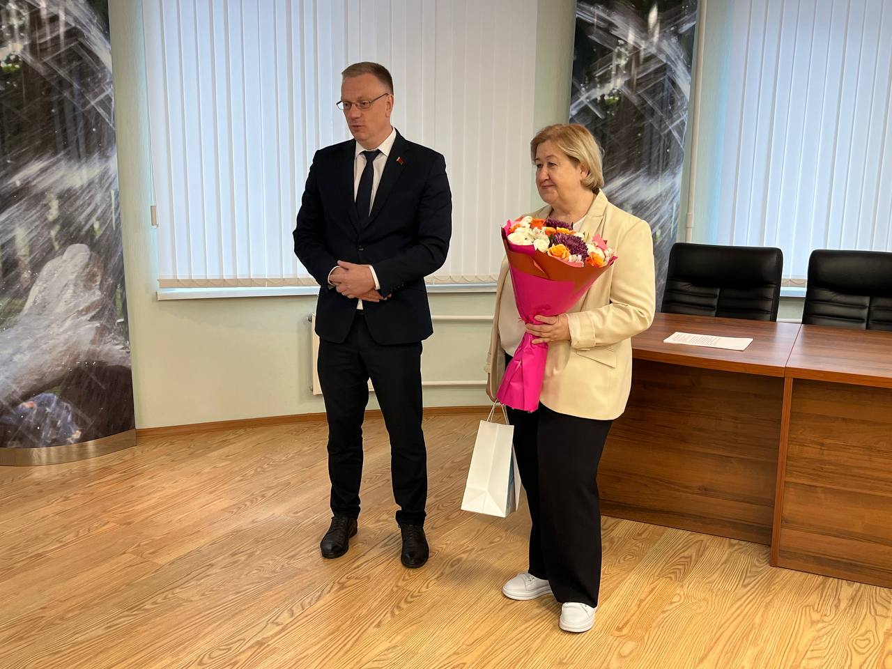 В торжественной обстановке, в присутствии коллег, директор предприятия Фёдор Викторович Римашевский поздравил Анжелику Владимировну и выразил слова благодарности за профессионализм и многолетний труд, пожелал здоровья, благополучия и дальнейших успехов в работе.