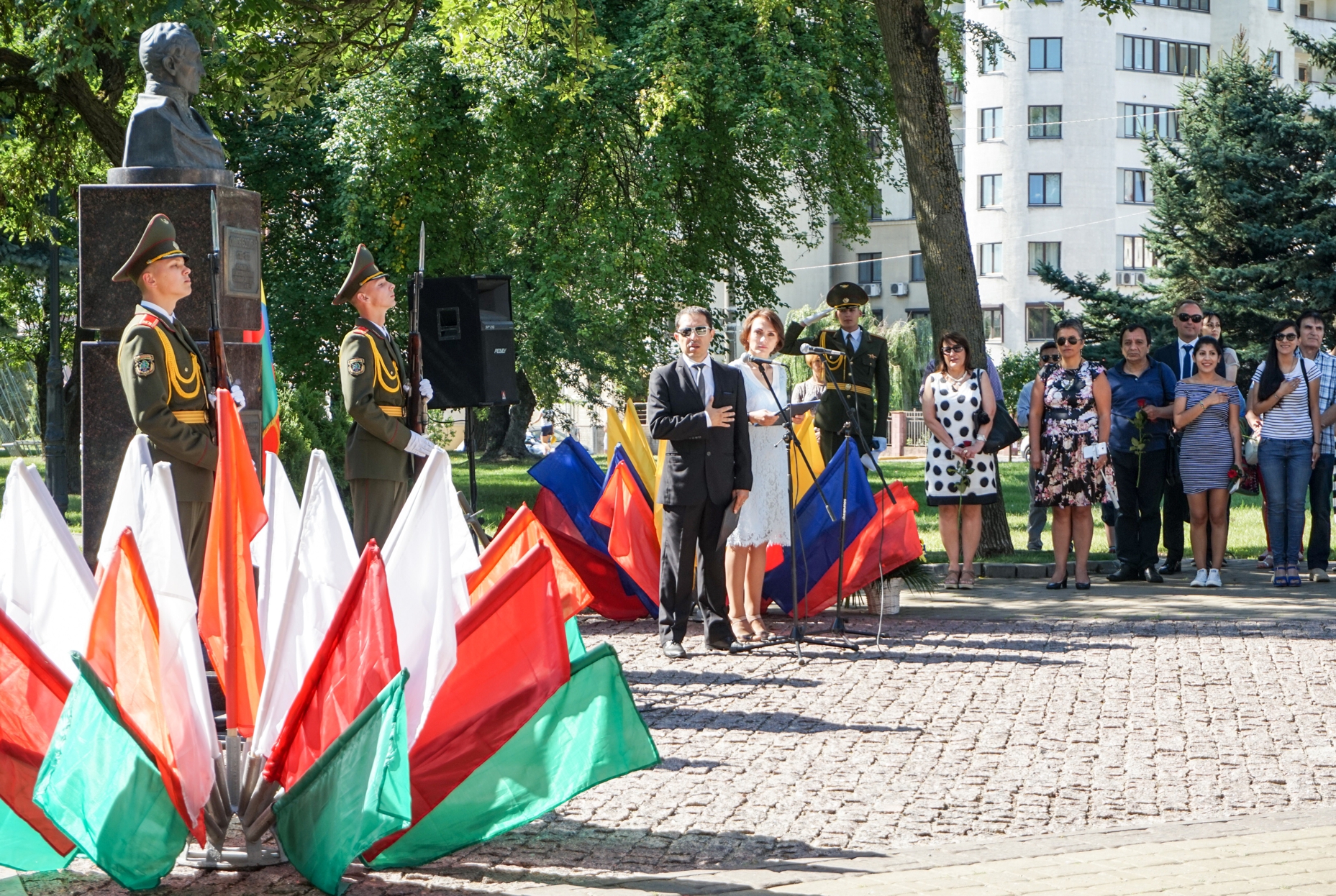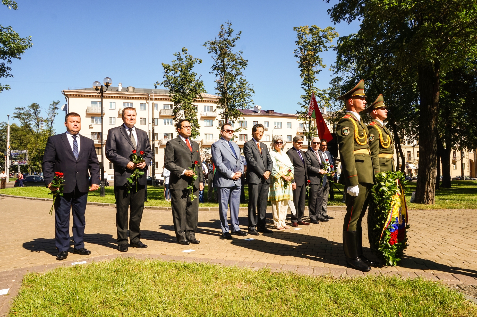 В присутствии представителей государственных органов Республики Беларусь, служащих дипломатического корпуса, представителей Мингорисполкома, администрации Партизанского района Минска, общественных организаций, учреждений образования и трудовых коллективов предприятий района прошла церемония возложения венков и цветов.