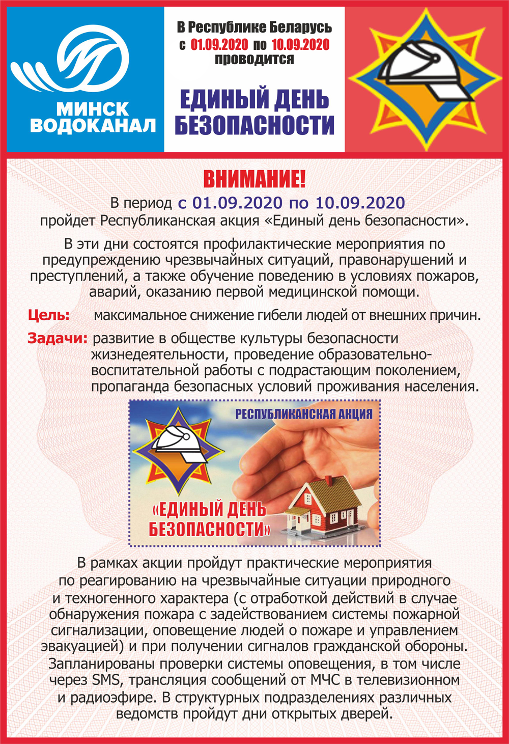 В Республике Беларусь в период с 1 по 10 сентября 2020 года пройдет профилактическая акция «Единый день безопасности».