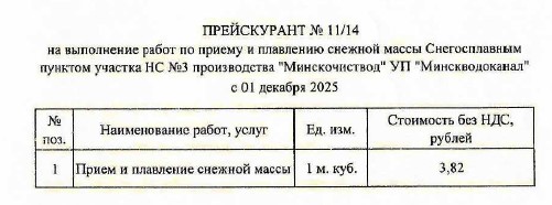 Тариф на оказание услуг по приему и плавлению снежной массы